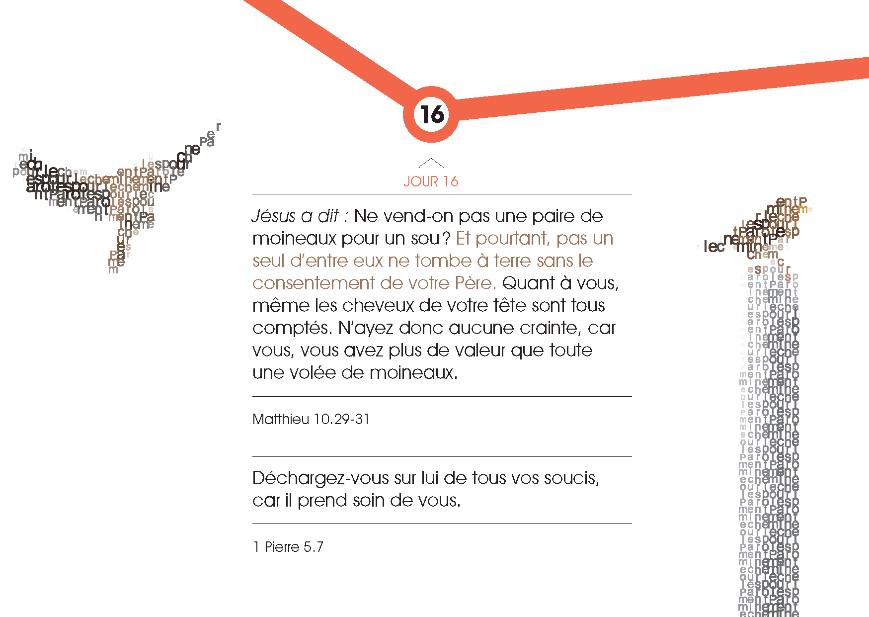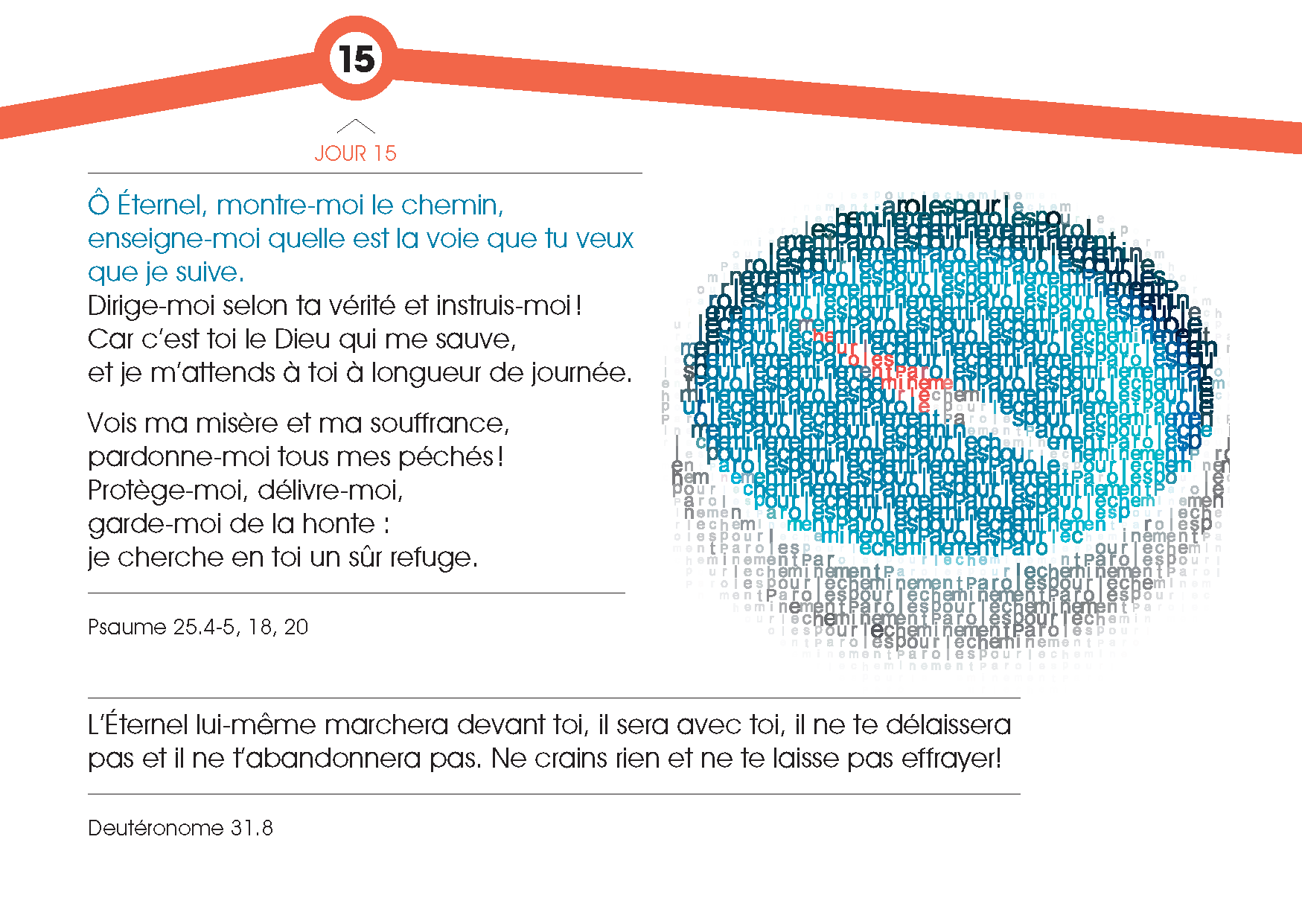 The booklet Words for the Journey contains portions from the Bible for 31 days. The biblical verses revolve around the concepts of thirst, light, love, mercy, forgiveness, guiding readers on their life journey. You can use it both for reaching out to new people as well as for pastoral work.